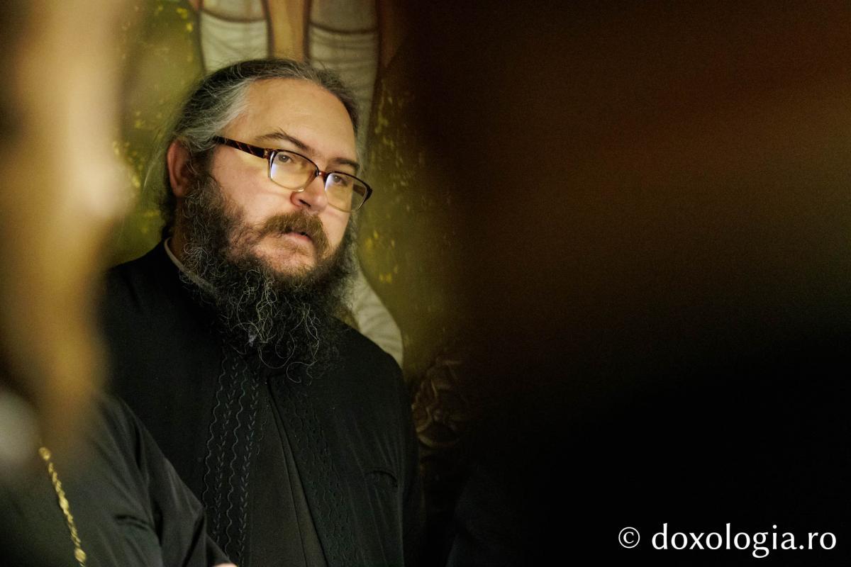 La slujba privegherii a slujit un sobor de preoți și diaconi sub protia părintelui arhimandrit Elisei Nedescu, starețul Mănăstirii „Sfinții Trei Ierarhi” din Iași, iar răspunsurile liturgice au fost date de Corul preoțesc „Apostolii” (în strana dreaptă) și, respectiv, de corul mănăstirii Copou (în strana stângă).