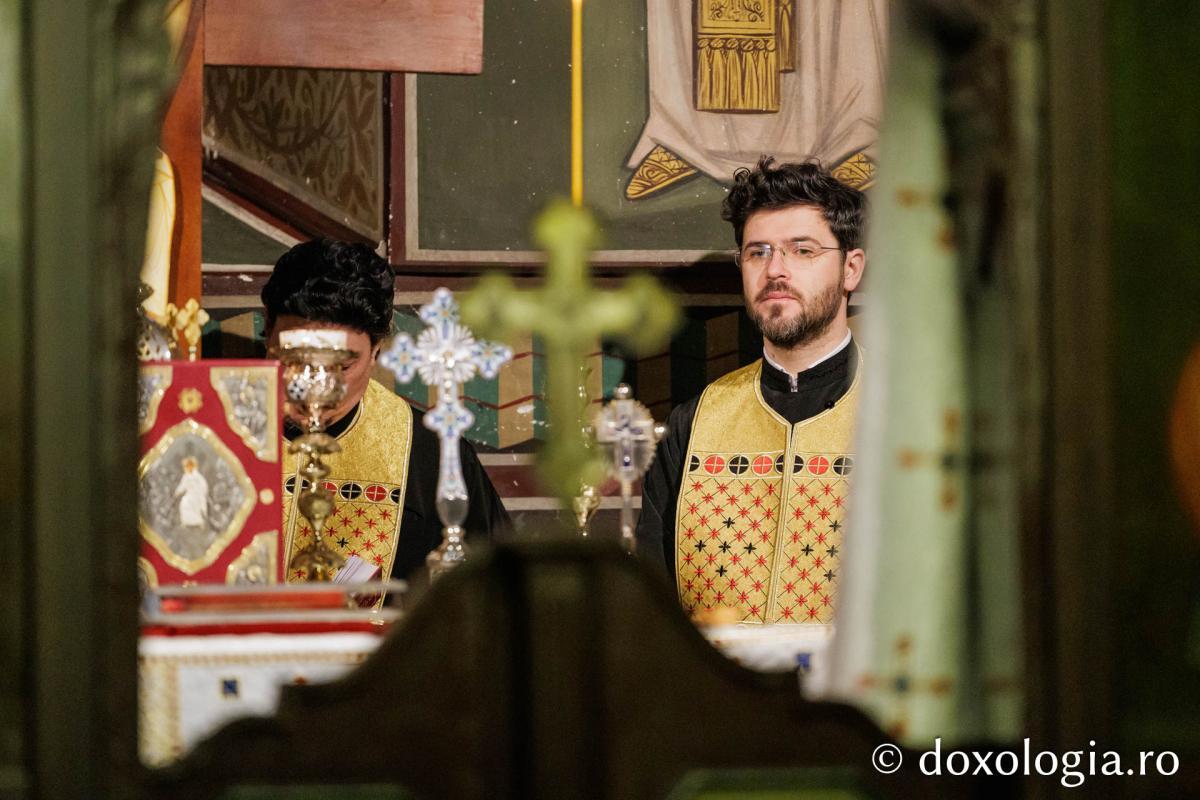 Sfânta Liturghie a fost săvârșită de Înaltpreasfinţitul Părinte Teofan, Mitropolitul Moldovei și Bucovinei, înconjurat de un sobor de preoți și diaconi.